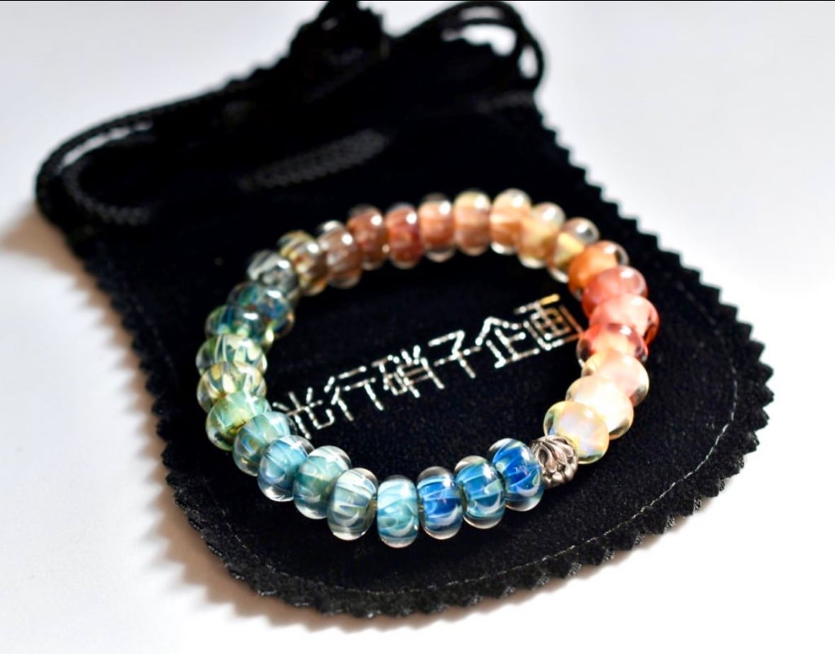 耐熱硝子製ビーズで仕立てた硝子製のブレスレット。