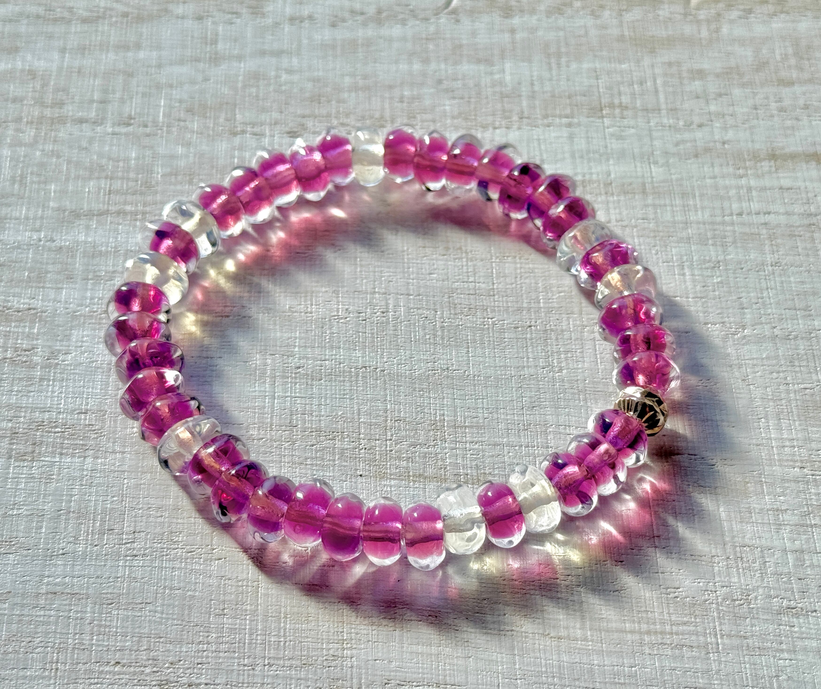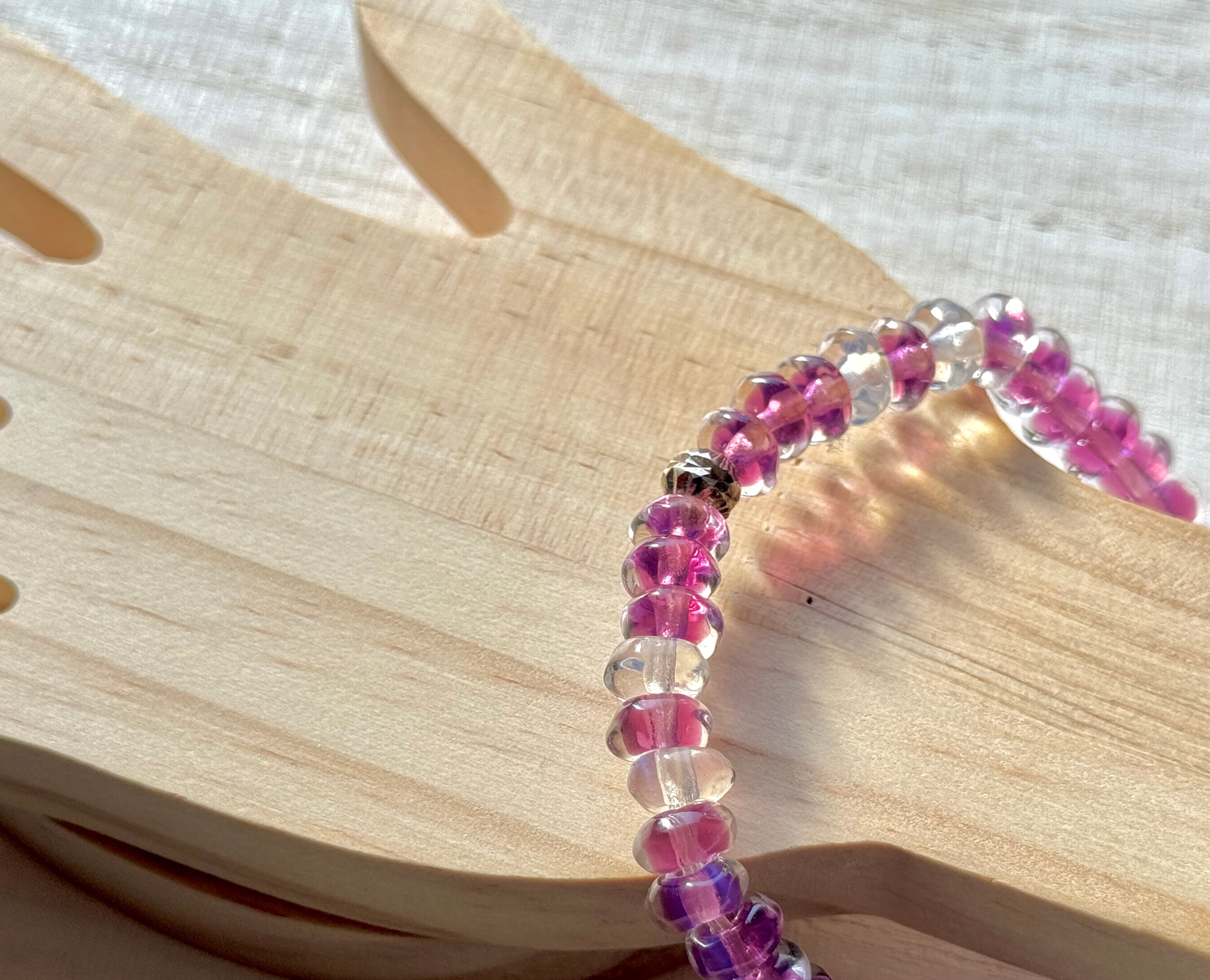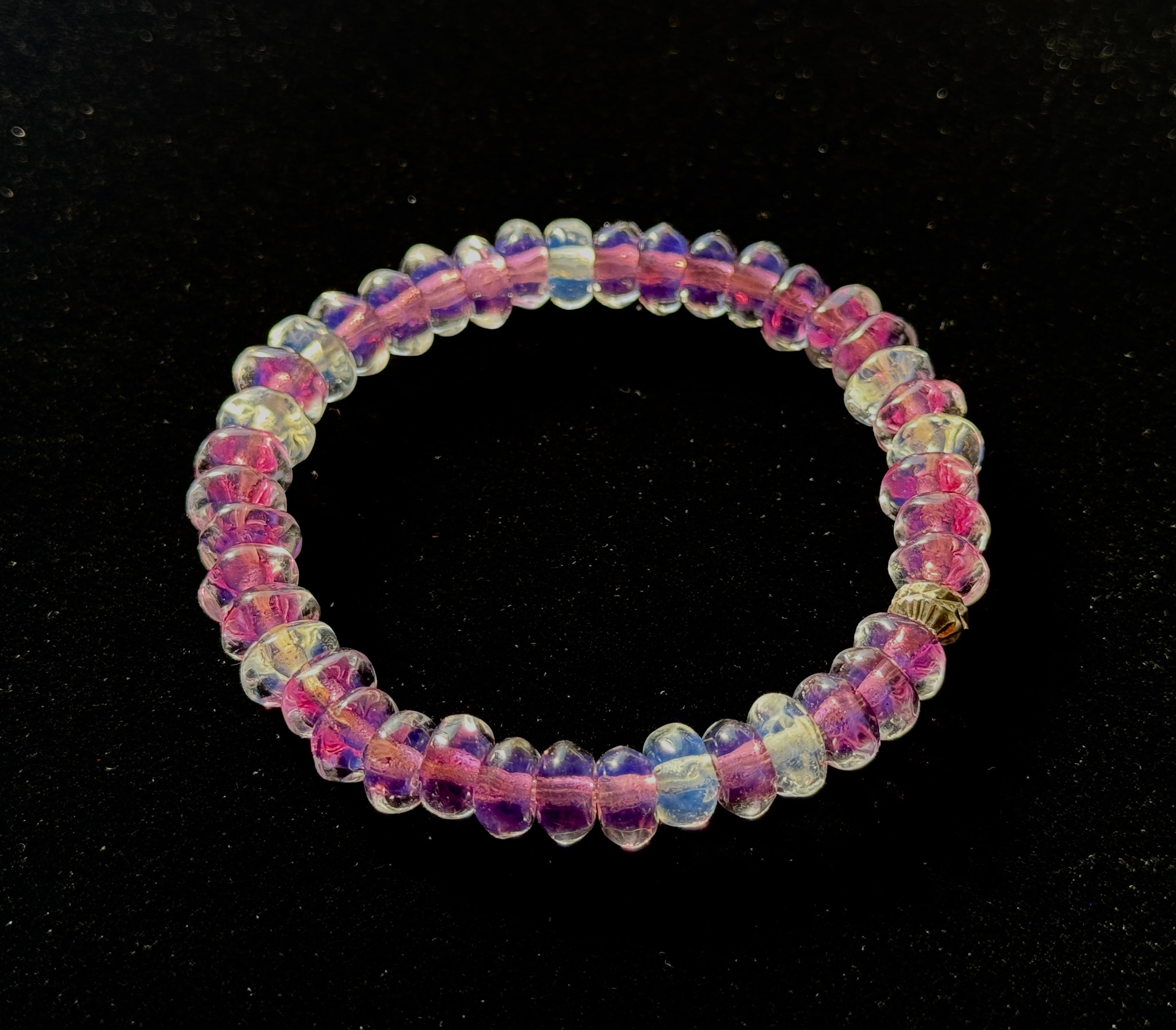 耐熱硝子製ビーズで仕立てた硝子製のブレスレット。